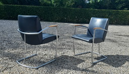 2 armchairs German Bauhaus era Gropius style, white + night gray 1920s