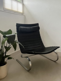 Black Leather Vintage 1970s "Tamara" Folding Chair by Arrben Italy