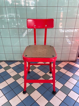 Vintage 50s Stool Red Mottled Folding Step Ladder Metal and Wood Step Industrial Retro Ladder Stool