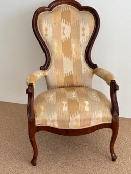 2 antique French armchairs - recently retrimmed
