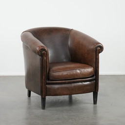Sturdy and characterful vintage sheepskin club armchairSturdy and characterful vintage sheepskin club armchair