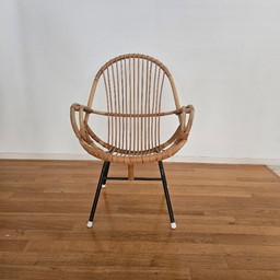 Rohe Noordwolde bar stools cane vintage 2xRohe Noordwolde bar stools cane vintage 2x