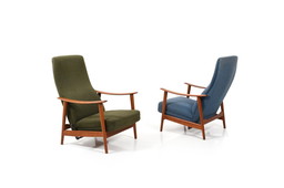 Mid-Century Danish Teak Reclining Lounge Chairs, 1960s, Set of 2