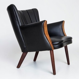 1970s, Danish design by Svend Skipper, armchair, model "Teddy", artificial leather, teak wood.