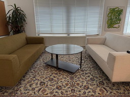 Design table Draenert model 2020 Cherry Vorland, granite & cherry wood, double legs