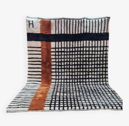 Beni Ouarain "Mosaic" carpet, Deep Blue and Earth, Artist's Piece 3x2M