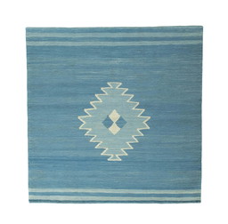 Blue And Yellow Natural Wool Hand-Woven Rug