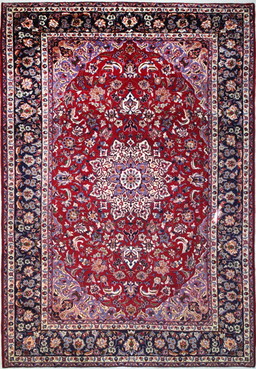 Hand-knotted Sarough oriental rug - 310 x 215 cm - Traditional floral design on dark blue