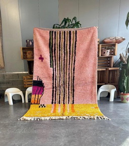 Authentic Moroccan Boujad Pink Berber Wool Rug 160x270 cm - Handwoven Geometric Boho Area Carpet