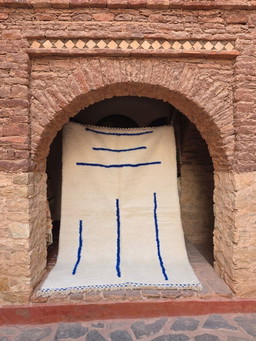 Off-white Moroccan rug with colorful patterns, 250cm x 150cm