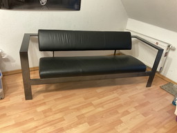 B&B Italia 2.5-seater sofa with anthracite-colored fabric upholstery and stainless steel base.