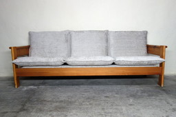 Three-seater German Velvet Sofa, 60s, Grey, Restored