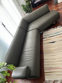 Leolux, Danaïde sofa, yellow leather, taupe leather cushions