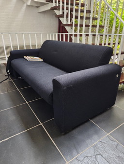 Exquisite De Sede Black Leather Strap Stitched Three-Seat Sofa DS31. Switzerland, 1960s.