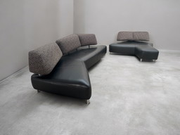 Black leather sofa set consisting of 3 pieces Cassina Maralungo consisting of 2-seat, 1-seat and ottoman