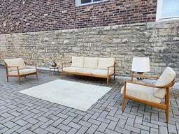 Like new Holstebro Danish Mid Century Design Sofa + 2 armchairs, solid teak, premium new wool, exhibition condition, RRP 14,000