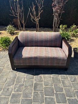 Vintage Sofa Checkered Fabric and Wood