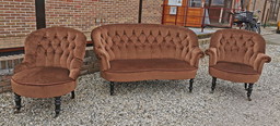 Three-seater sofa in German velvet, 60s, mustard, restored