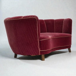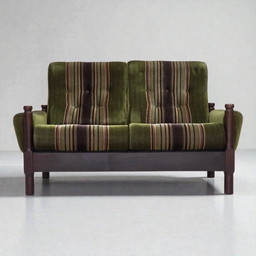 1960s, Danish 2-Seater "Banana" Sofa, Furniture Velour, Beech Wood