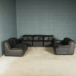 Vintage modular seating area/seating group – black leatherVintage modular seating area/seating group – black leather