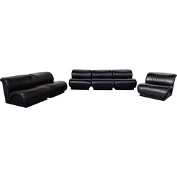Mid-century black leather living room set by Doimo Salotti, Italy 1970sMid-century black leather living room set by Doimo Salotti, Italy 1970s