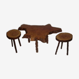 Set of 2 Scandinavian side/saloon tables (1970s) - kidney-shaped with inlay