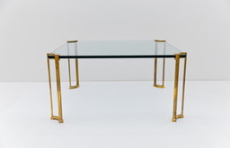 Vintage Brass and Glass Coffee Table attributed to Peter Ghyczy, 1970sVintage Brass and Glass Coffee Table attributed to Peter Ghyczy, 1970s