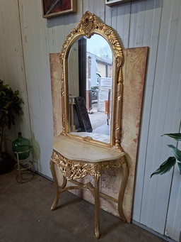 Large side table, hall table, wall console with marble top dim. 153x60cm and 88cm high.