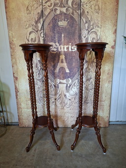 Classic mahogany wooden plant tables side tables, dimensions 28x28cm and 100cm high.