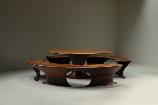 A dining room set has been around since ancient Egypt and is nothing more or less than a set of chairs with a table to which the chairs belong. It is used to serve food on and for a group of people to gather together. Both the table and the chairs can be made of a variety of materials, sizes, colours and styles.