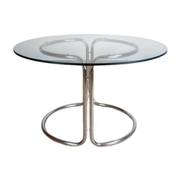 Glass Dining Table on Chrome Base, Italy, 1970s