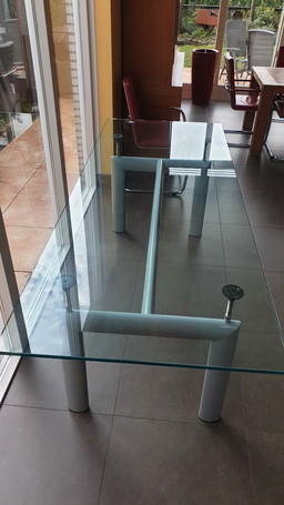 Leolux "Trias" designer dining table (Hugo de Ruiter) including custom-made glass top