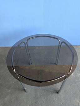 Mid-Century Italian Chrome and Steel Coffee Table with Round Smoked Glass Top, 1960s