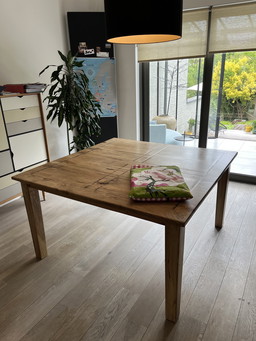 Herringbone dining table recycled wood