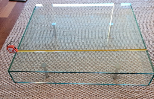 Authentic, square 70s coffee table with glass top