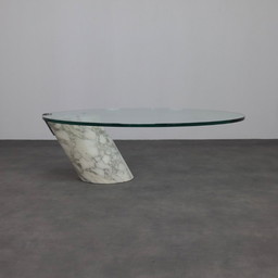 Oval Coffee Table in Carrara Marble and Glass by Ronald Schmitt, Germany, 1970sOval Coffee Table in Carrara Marble and Glass by Ronald Schmitt, Germany, 1970s