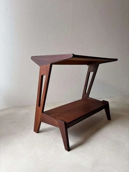 Vintage side table, newspaper rack with tile from Hemiksem, 1950s