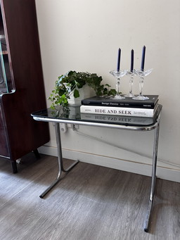 Side Table Round - Chrome With Glass 1980S - Bauhaus Style