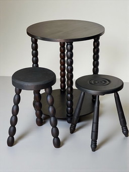 Octagonal pedestal table + 2 footstools Colonial 30s