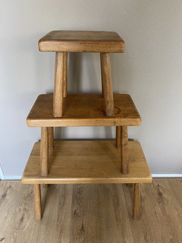 Vintage brutalist oak side tables Charlotte Perriand style