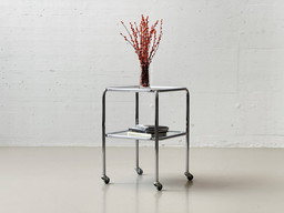 A beautiful vintage occasional table made in the fifties, sixties, seventies or early eighties is what gives your interior radiance. Such a side table is the ideal help to have drinks and snacks within reach at the seating area. Full wood furniture, chrome, ceramic, bamboo combined with brass are materials that represent vintage.