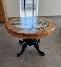 Round Oak Coffee Table with 2 Vintage Tops
