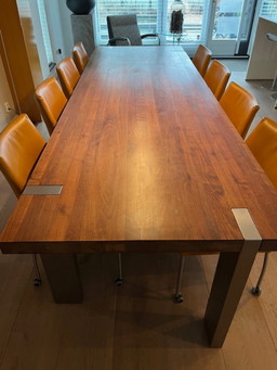 For Sale: Dining table 1.00 x 3.00 m walnut with stainless steel legsFor Sale: Dining table 1.00 x 3.00 m walnut with stainless steel legs