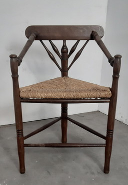set of 2 wooden Art Deco design dining chairs with wicker seat and back