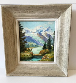 Olio su tavola: M. Ferran, "Paesaggio autunnale" (32 x 27)
