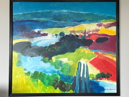 Quadro originale "Vista d'estate", 70 x 50 cm, incl. cornice in vero legno e appendiabiti