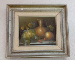 Dipinto con scena di bosco e fagiano in cornice di legno originale