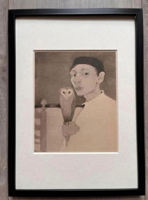 Jan Mankes 1889-1920 / Autoritratto originale in eliogravura con gufo, 1923Jan Mankes 1889-1920 / Autoritratto originale in eliogravura con gufo, 1923