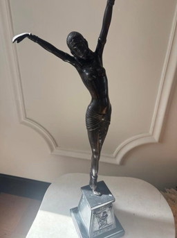Scultura in bronzo in stile Art Déco su base di marmoScultura in bronzo in stile Art Déco su base di marmo