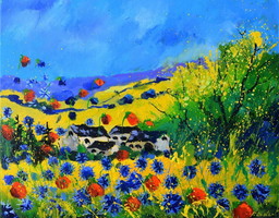 Paesaggio naif dipinto su tela